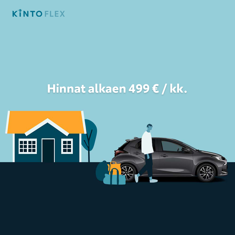 KINTO Flex on suoratoistopalveluiden tapainen autoilun kuukausitilauspalvelu, jonka kautta saat auton käyttöösi vain kuukauden sitoutumisajalla. Tilauksen teet muutamassa minuutissa netissä ja saat auton käyttöösi jopa parissa arkipäivässä. Palvelussa on saatavilla 17 erilaista Toyota- ja Lexus-mallia, joista voit valita juuri omaan käyttötarkoitukseesi sopivimman. Helppo maksukortilta automaattisesti veloitettava kuukausimaksu sisältää muun muassa vakuutuksen, ajoneuvoveron, huollot ja kahdet renkaat kausivaihtoineen sekä säilytyksineen. Tilaus jatkuu niin pitkään, kunnes päätät perua sen.